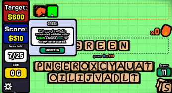 Wordpetition is a game with a completely unique mechanic where you reorder and insert letters in a box to score words. Words that you spell will give you jokers Word Cards (or other effects). Every word card has a unique effect.